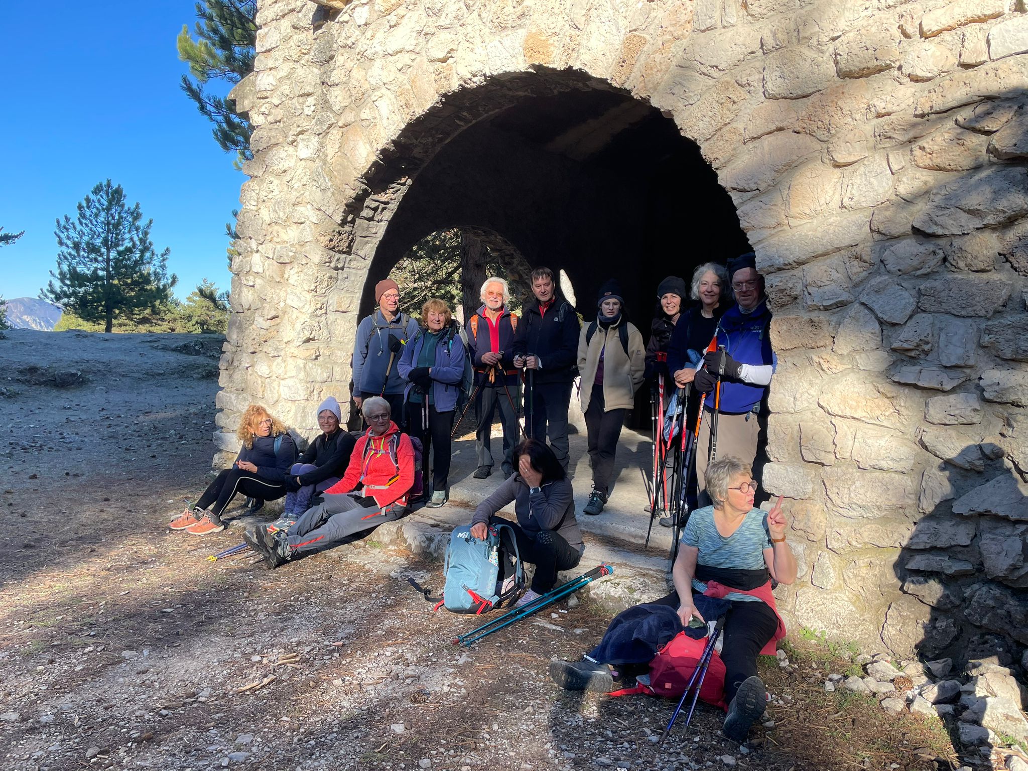 C'est par une belle matinée fraîche, très fraîche !!!, que nous nous sommes élancés du chemin des Mulières à Levens (668m) tout d’abord par une montée qui pique un peu vers le col du Dragon(1109m). Mais nous avons tenu bon, et quelle satisfaction en atteignant le col !