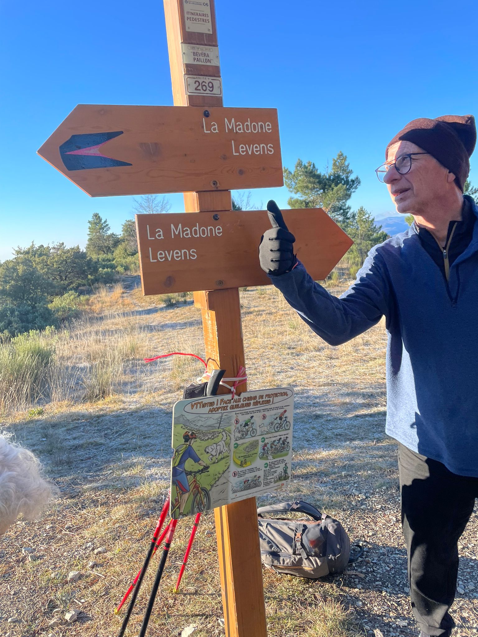 Après quelques glissades (volontaires ou pas), nous avons atteint la balise 457, au-dessus du village de Duranus.
