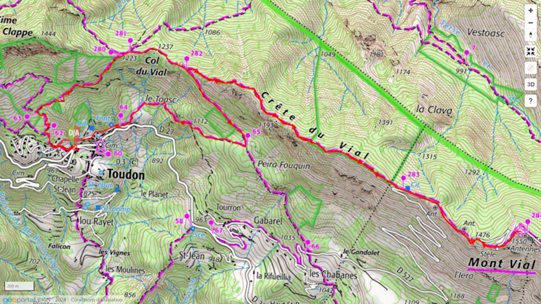 Le mont Vial fait partie du trio de choc des sommets du moyen pays (un peu star à 1550m !!, pas loin de Cannes), aux côtés des Courmettes et du Cheiron. Ensemble, ils ne se contentent pas de suivre le relief, ils prennent carrément de la hauteur pour mieux dominer le paysage.