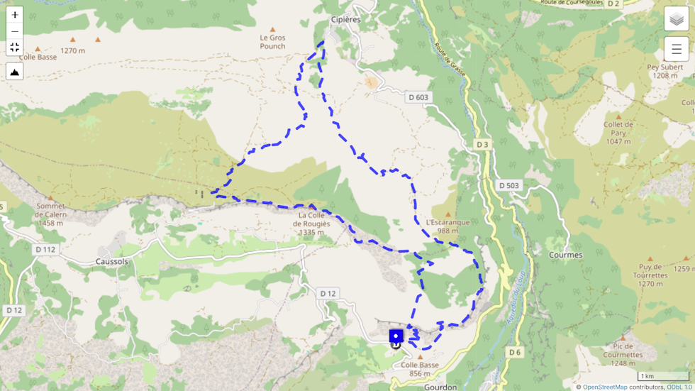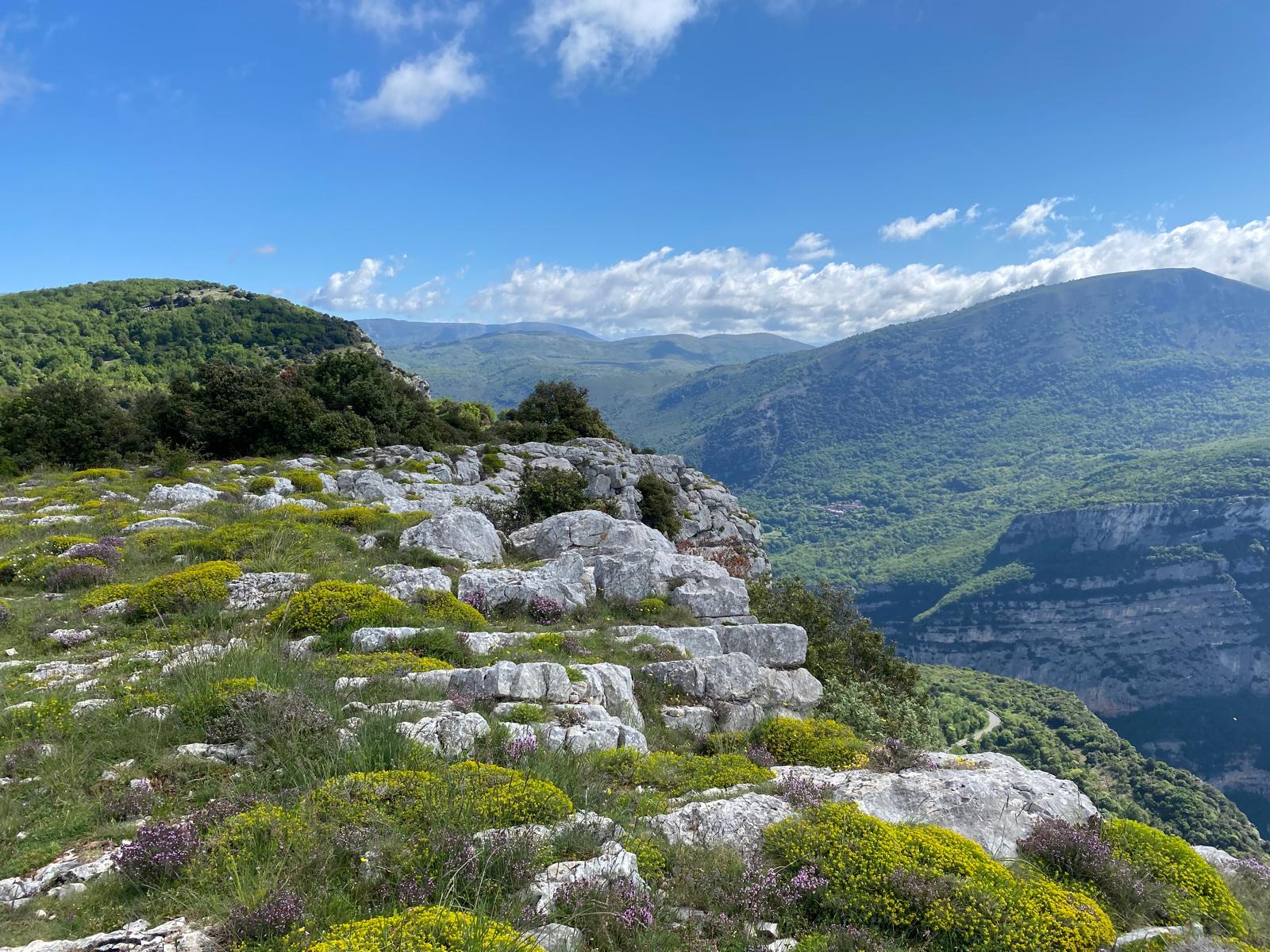 Les randonnées proposées commencent à proximité de Gourdon et nous conduiront en douceur vers le plateau de Cavillore, une vaste étendue calcaire située à 1000 mètres d’altitude. Recouvert de garrigue, de chênes verts et de conifères en son centre, ce plateau abrite une nature sauvage et un patrimoine discret mais fascinant : anciennes étables, dolines, grottes explorées par les spéléologues, oppidums, et même une voie romaine.