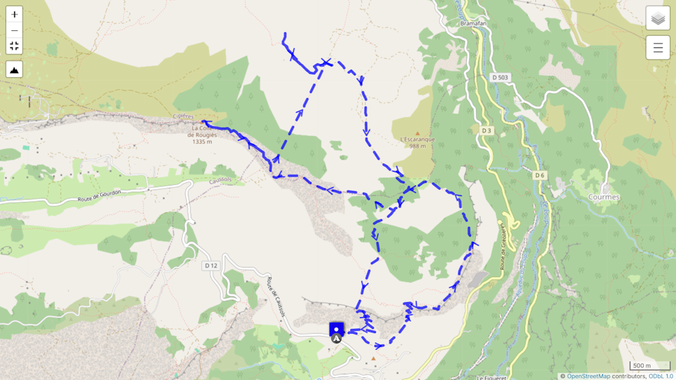 Regroupement sur le grand parking à quelques km de Gourdon sur la D12 route de Caussols.