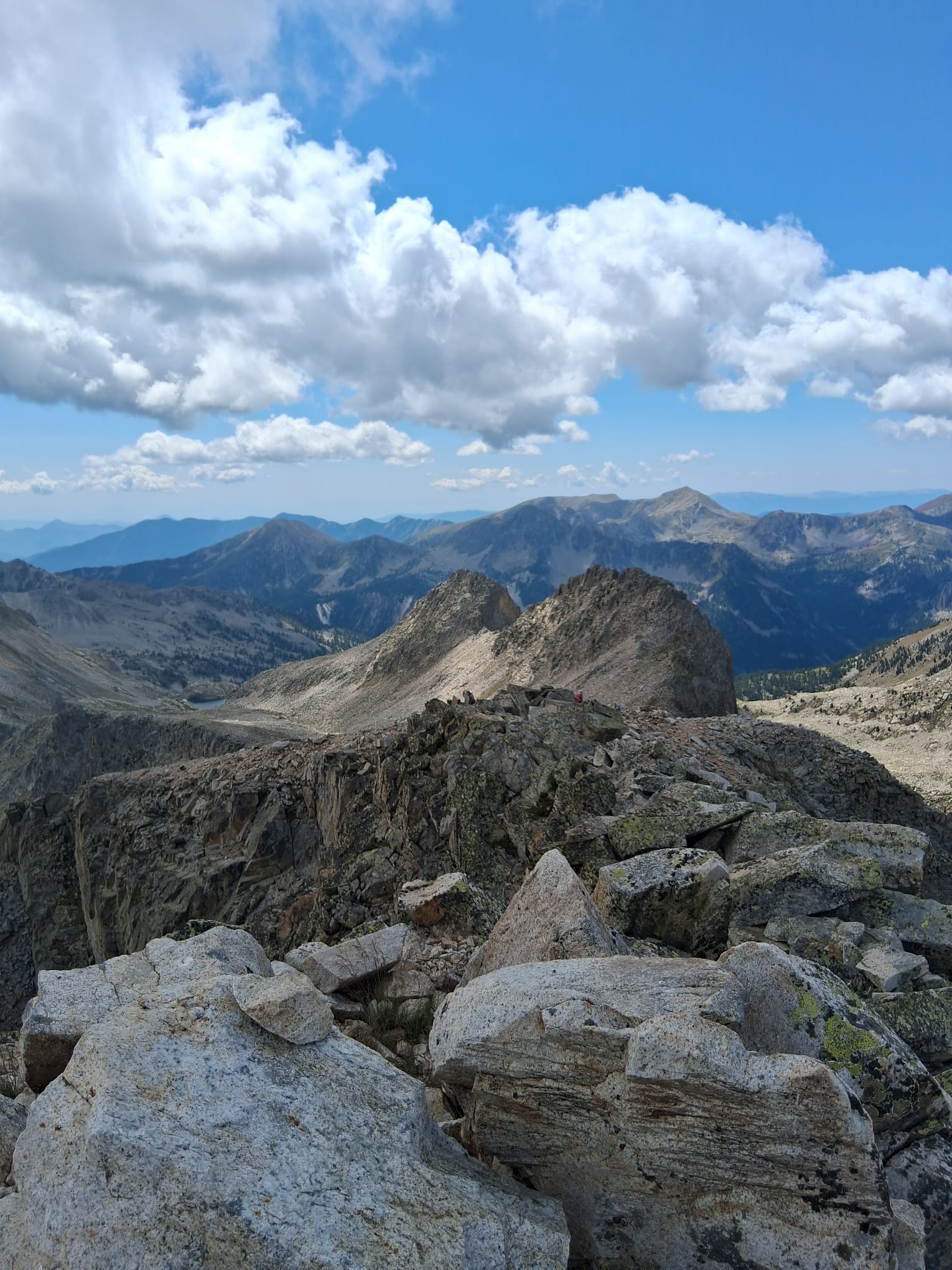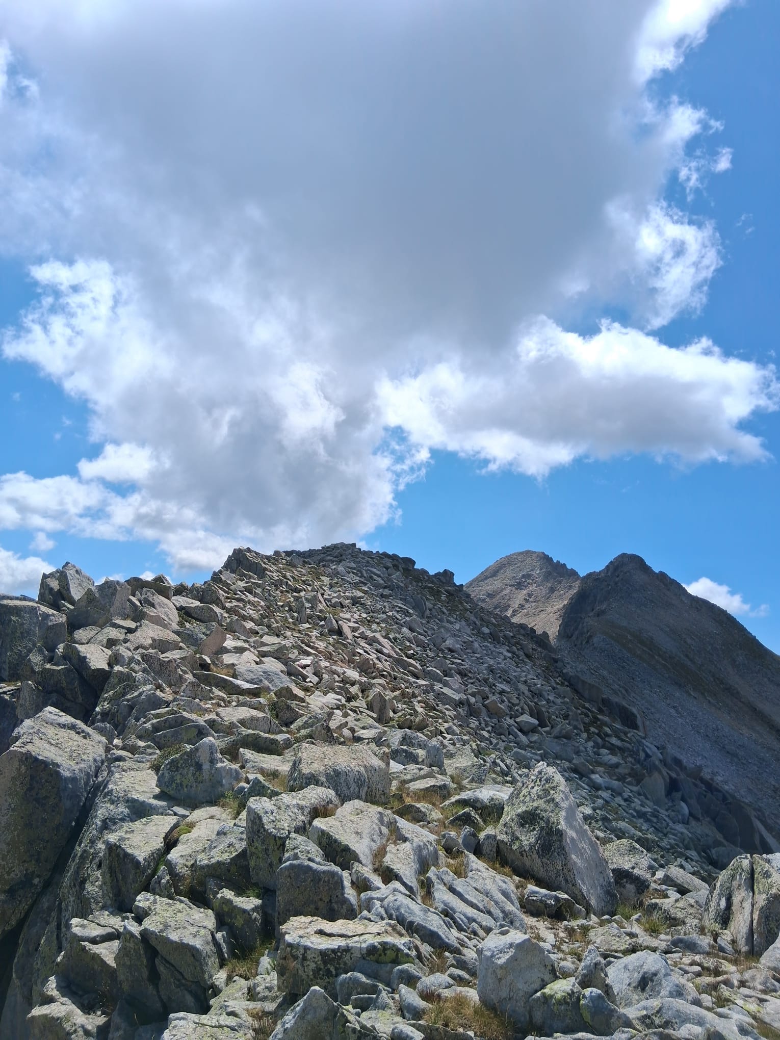 La dernière montée vers le sommet se fait dans de gros blocs rocheux ou il faut mettre les mains mais sans précipice.
