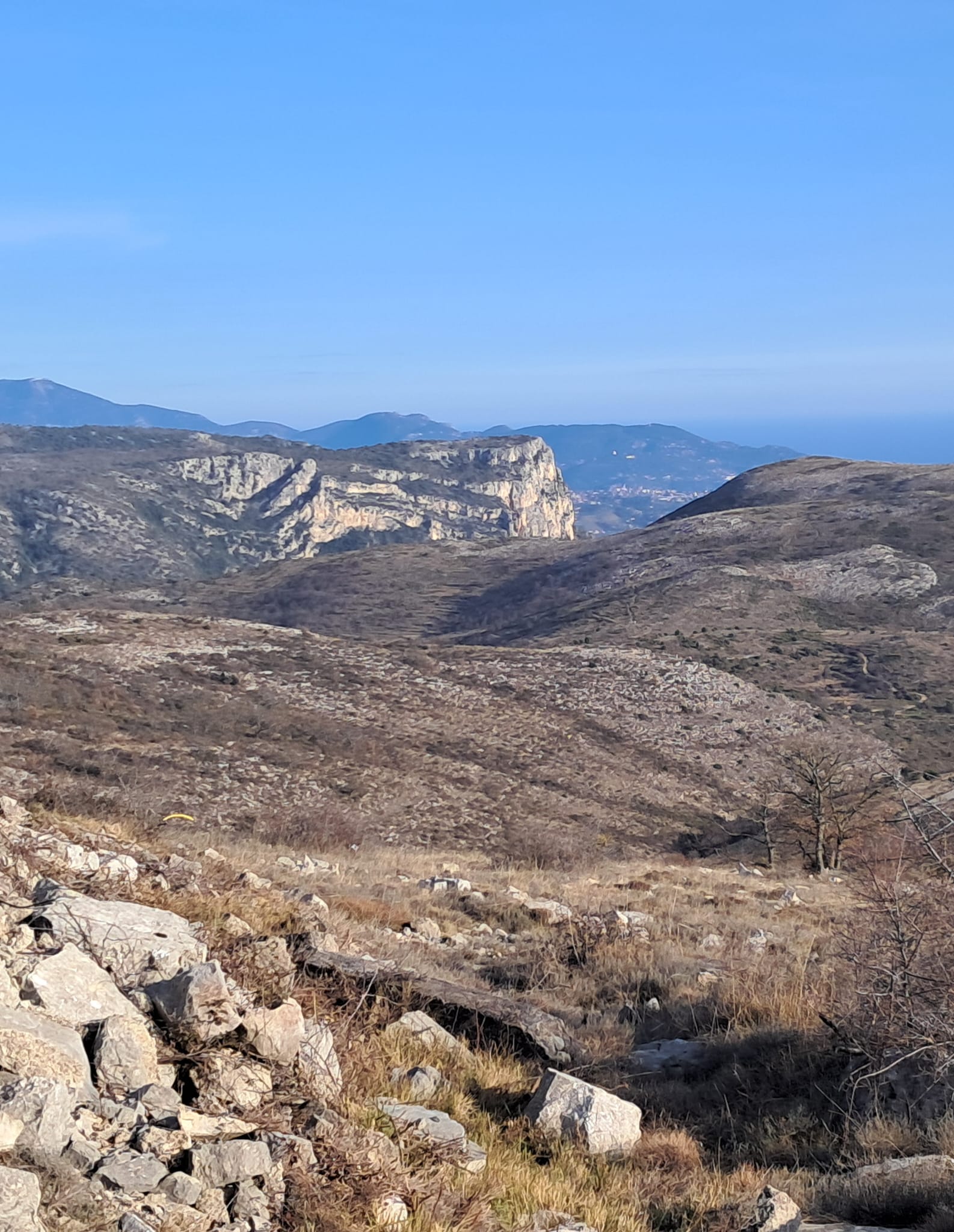 Vers l’Est, le vallon de la Cagne offre un contraste très marqué avec les Blaquières, les Fraisses de Malvan et le Castelet qui entourent la grande ouverture vers la mer.