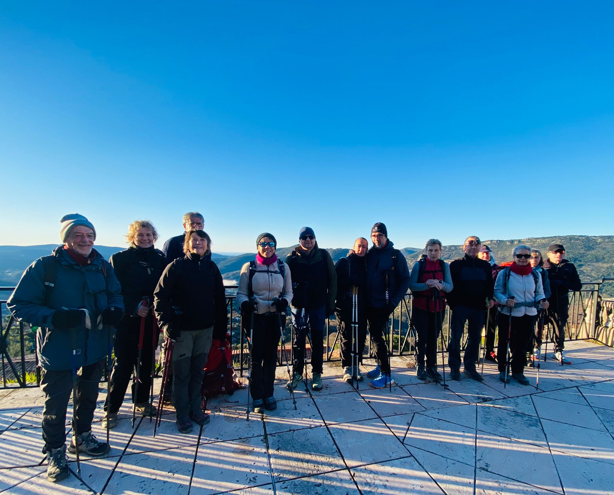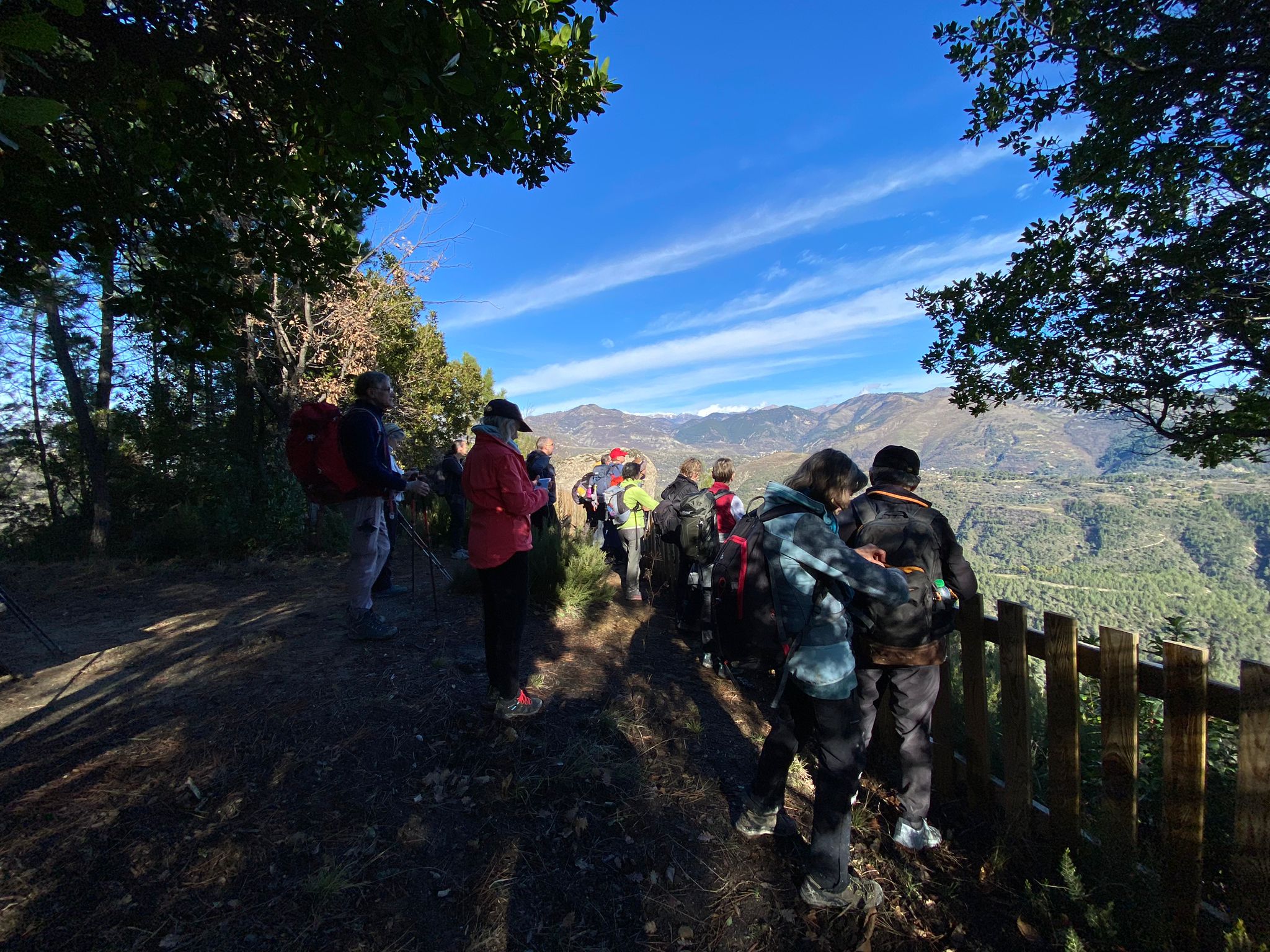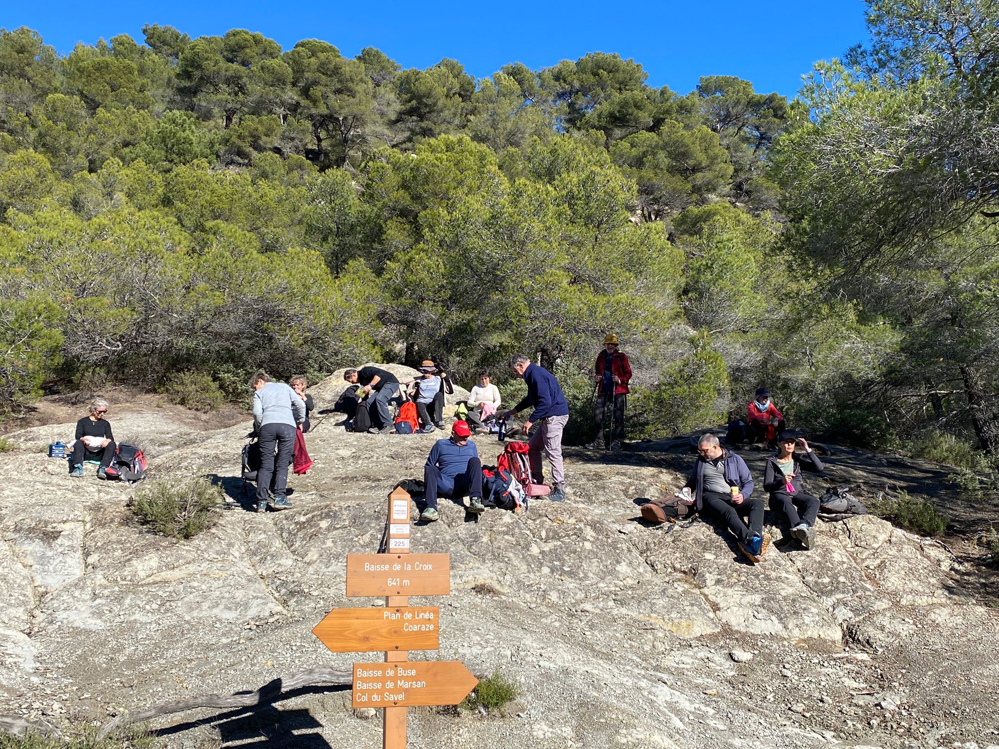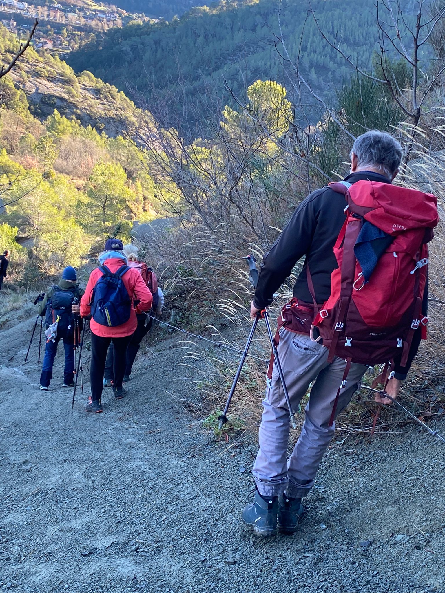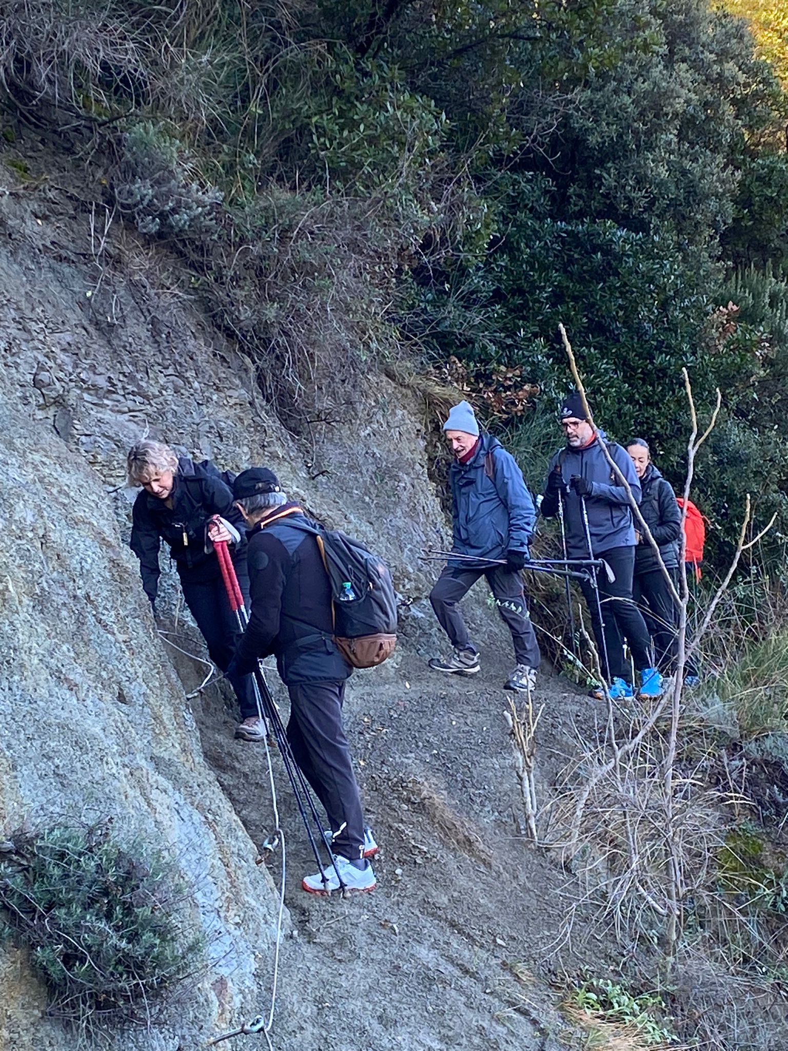 Le sentier, profondément raviné par les intempéries, s’est révélé difficile et exigeant. Il a fallu faire preuve d’une grande vigilance : s’accrocher aux cordes, aux branches, enjamber des ruisseaux, se faufiler sous des arbres tombés en travers des chemins, etc. Malgré ces difficultés, pas une chute, pas une égratignure, grâce à l’esprit d’entraide et à la solidarité exemplaire de notre groupe.
