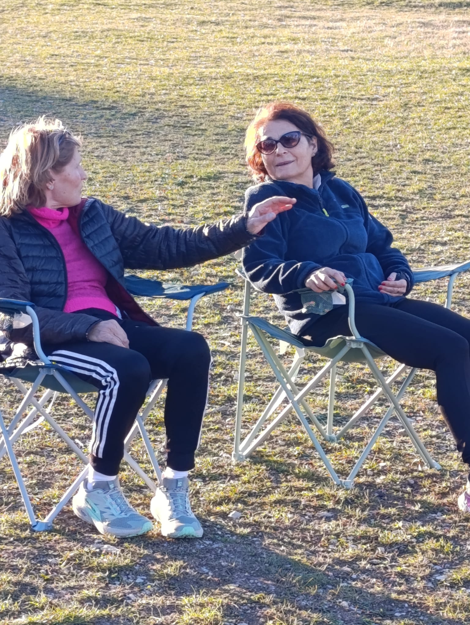 Ce matin, nous avons pris le temps d’arriver tranquillement au Mont Macaron. Sur place, une jolie plaine, dominée par les ruines du Châteauneuf, nous attendait. Nous étions là, déterminés à relever tous les défis. La séance a débuté par une mise en route dynamique et entraînante en musique, suivie d’une marche tonique, un excellent remède après les fêtes !