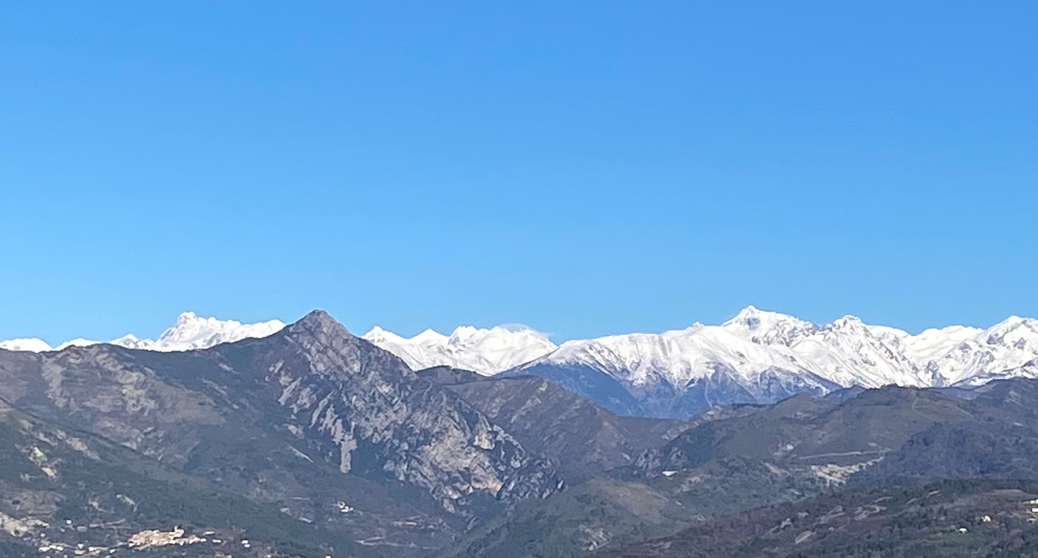 Le Mont Macaron, quel merveilleux lieu pour notre dernière marche nordique de l’année, et quelle splendide journée pour la clôturer en beauté ! Toutes les conditions atmosphériques et climatiques étaient réunies : un soleil étincelant, des couleurs magnifiques sublimant les paysages, des chaînes montagneuses, au loin, revêtues d’un manteau neigeux immaculé, et une mer aux reflets bleus, jaunes et dorés se mêlant harmonieusement.