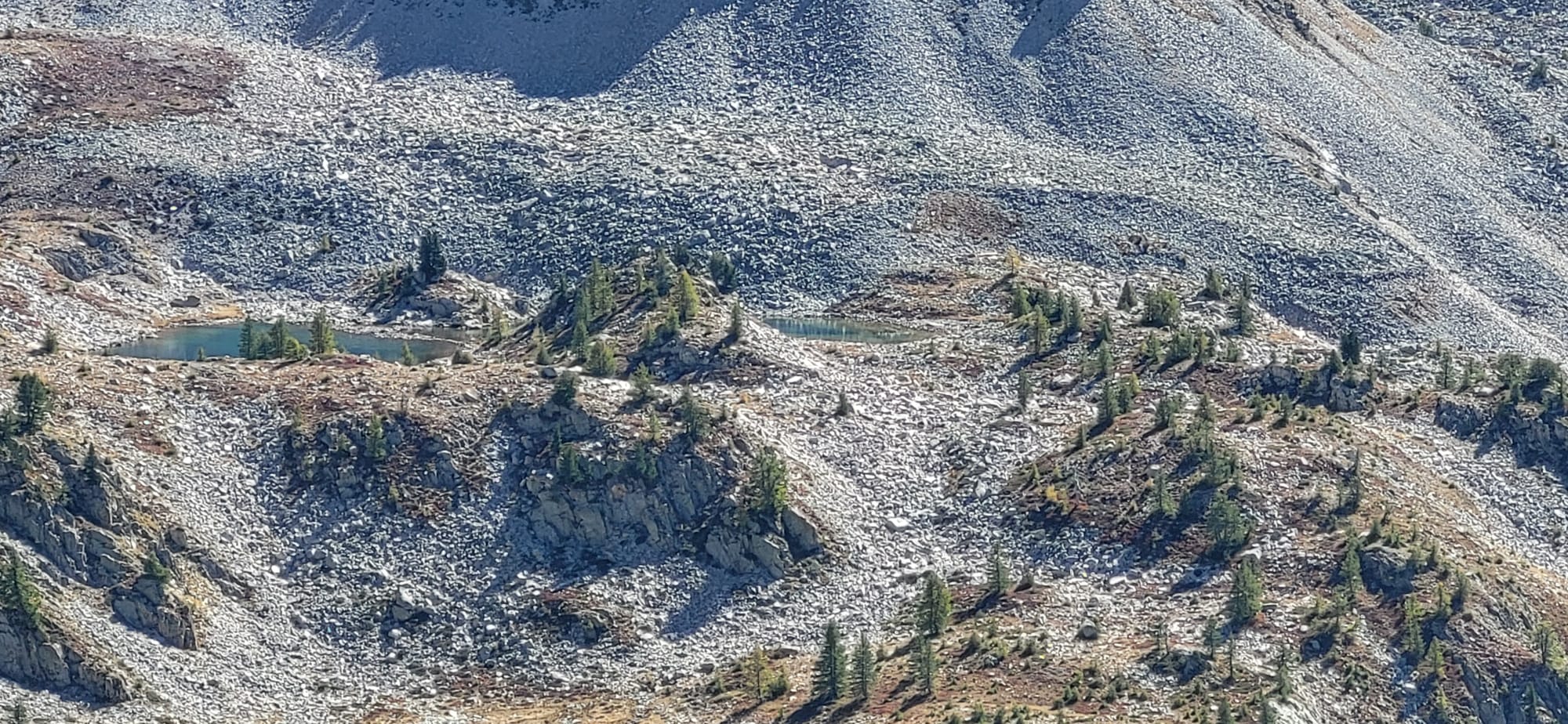 Arrivés au col de Salèse, le décor a changé brusquement : fini la verdure, place à un paysage minéral, sec et caillouteux. De part et d’autre de la frontière, plusieurs lacs venaient rompre la monotonie de ces reliefs arides. Sur les rochers ensoleillés, quelques marmottes profitaient des derniers rayons, tandis que des chamois se prélassaient sur le toit d’un vieux bunker.