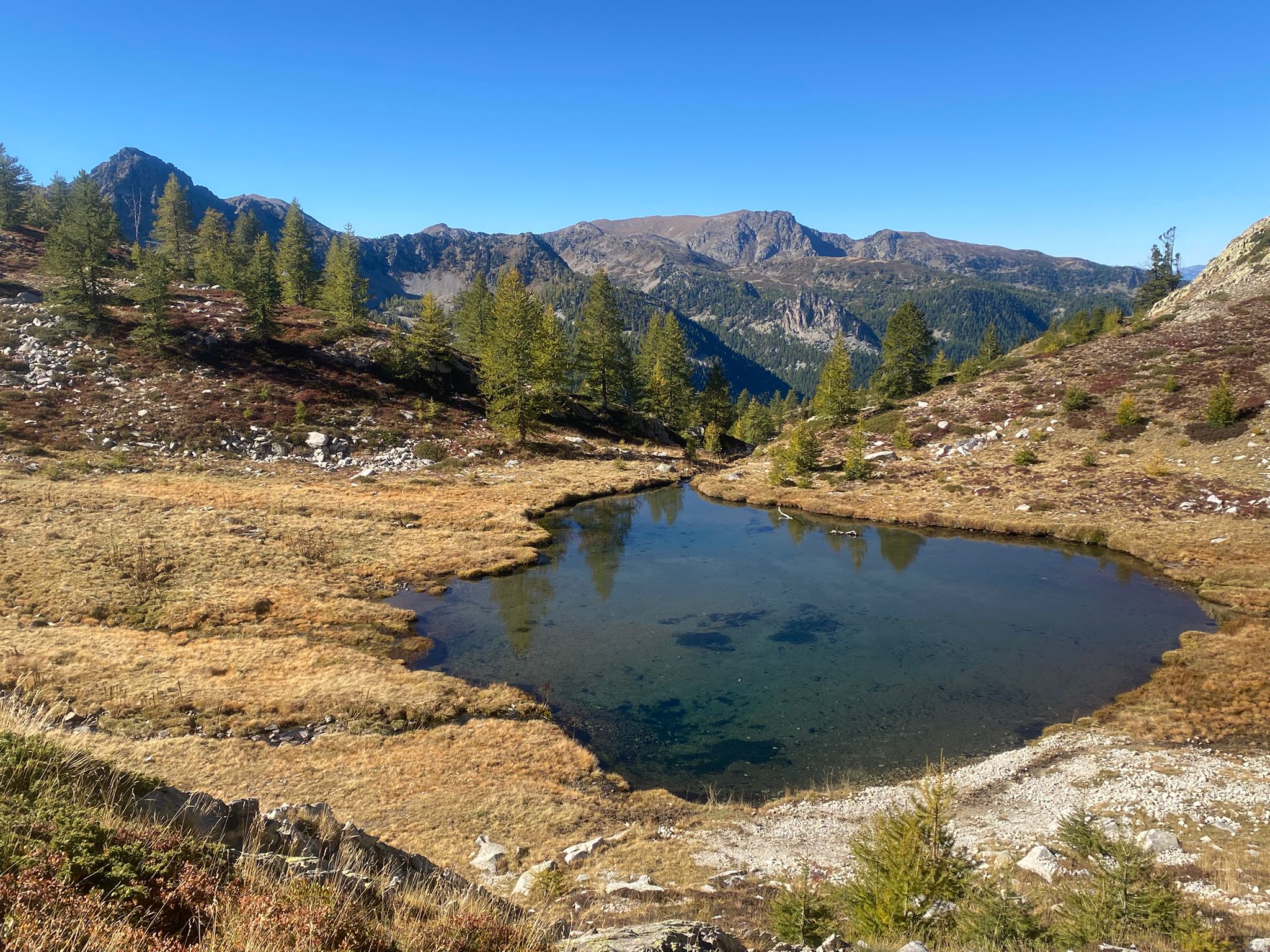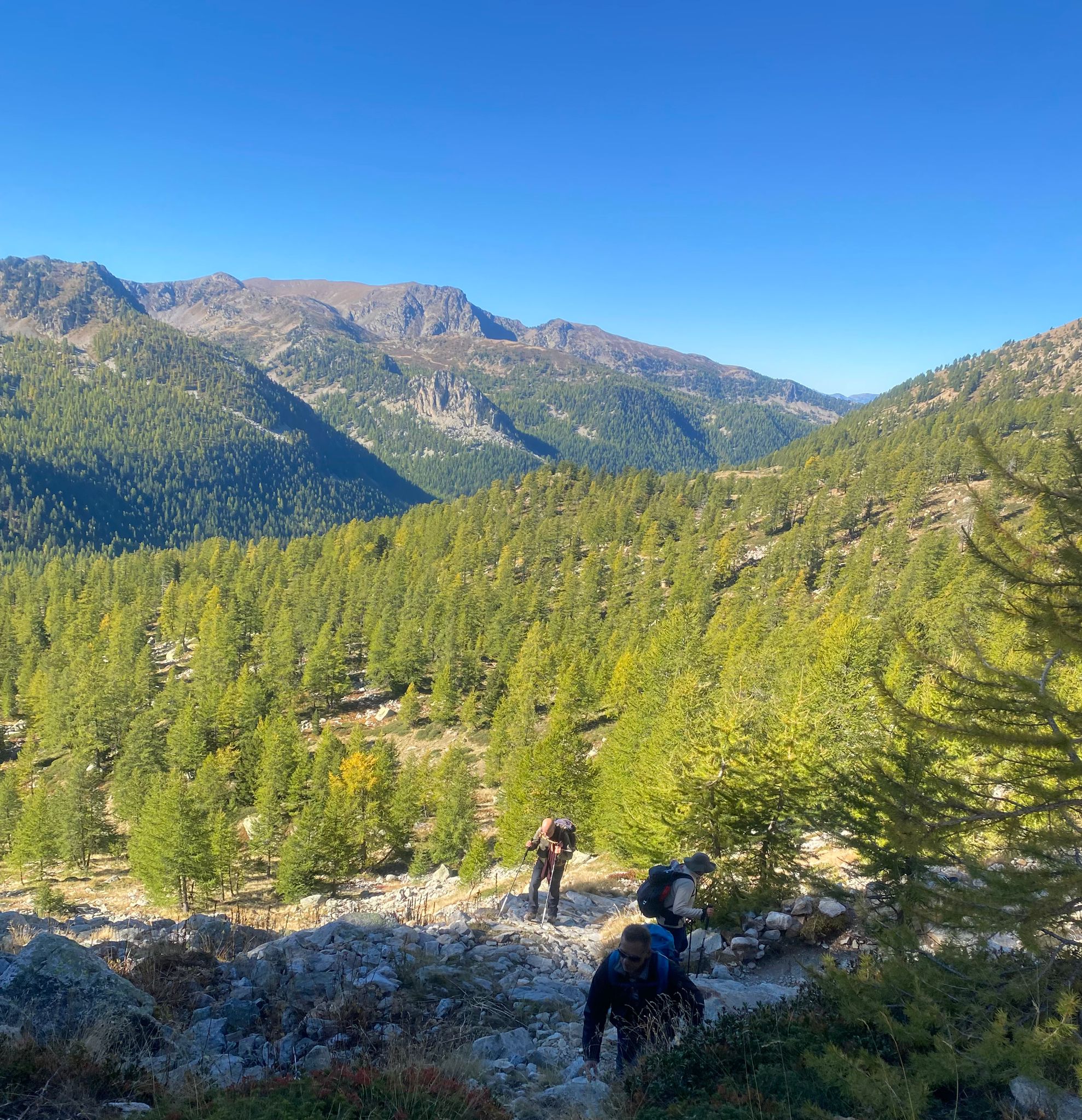 Notre randonnée a commencé à Boréon, au départ du parking de Salèse. Nous avons emprunté le sentier qui traverse la magnifique vallée du même nom, tapissée de mélèzes commençant timidement à se parer de leurs teintes automnales. Entre les arbres, des ruisseaux clairs serpentaient paisiblement, ajoutant une touche de fraîcheur au paysage.