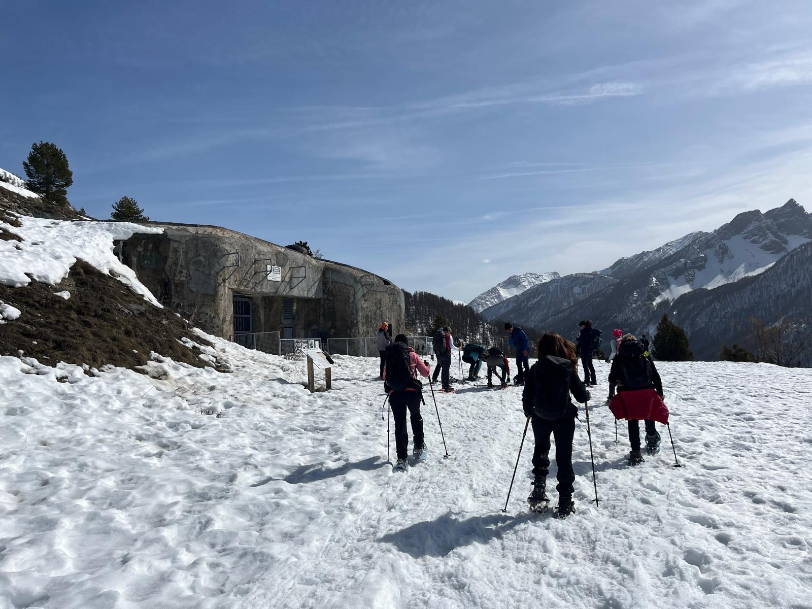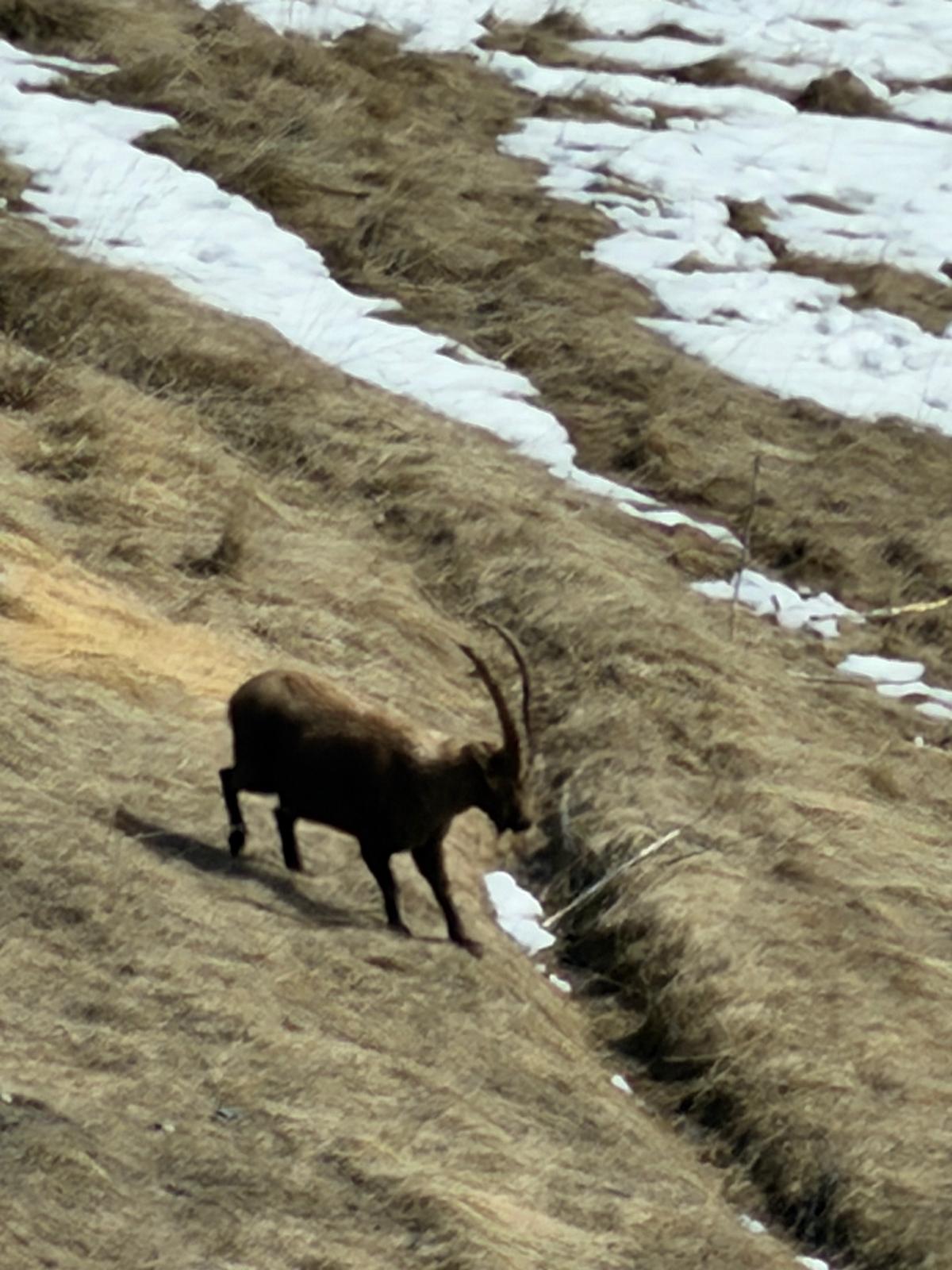 La première sortie raquettes autour du village de Saint Ours a été l'occasion de vérifier le matériel, la pratique, et nos connaissances, dont la fameuse conversion, sous l'œil bienveillant d'une douzaine de bouquetins.