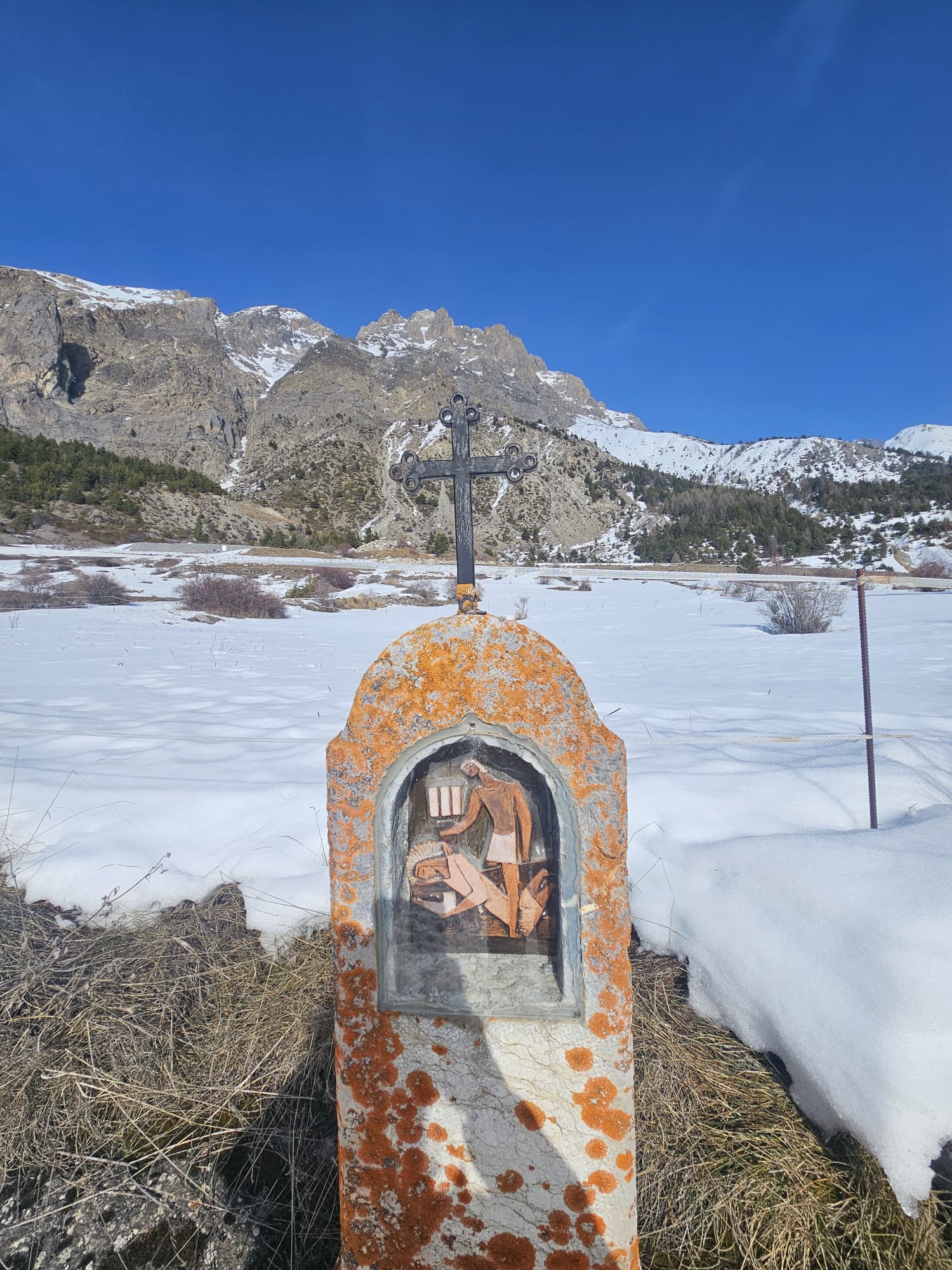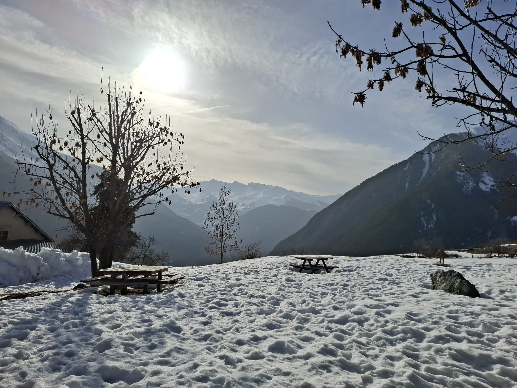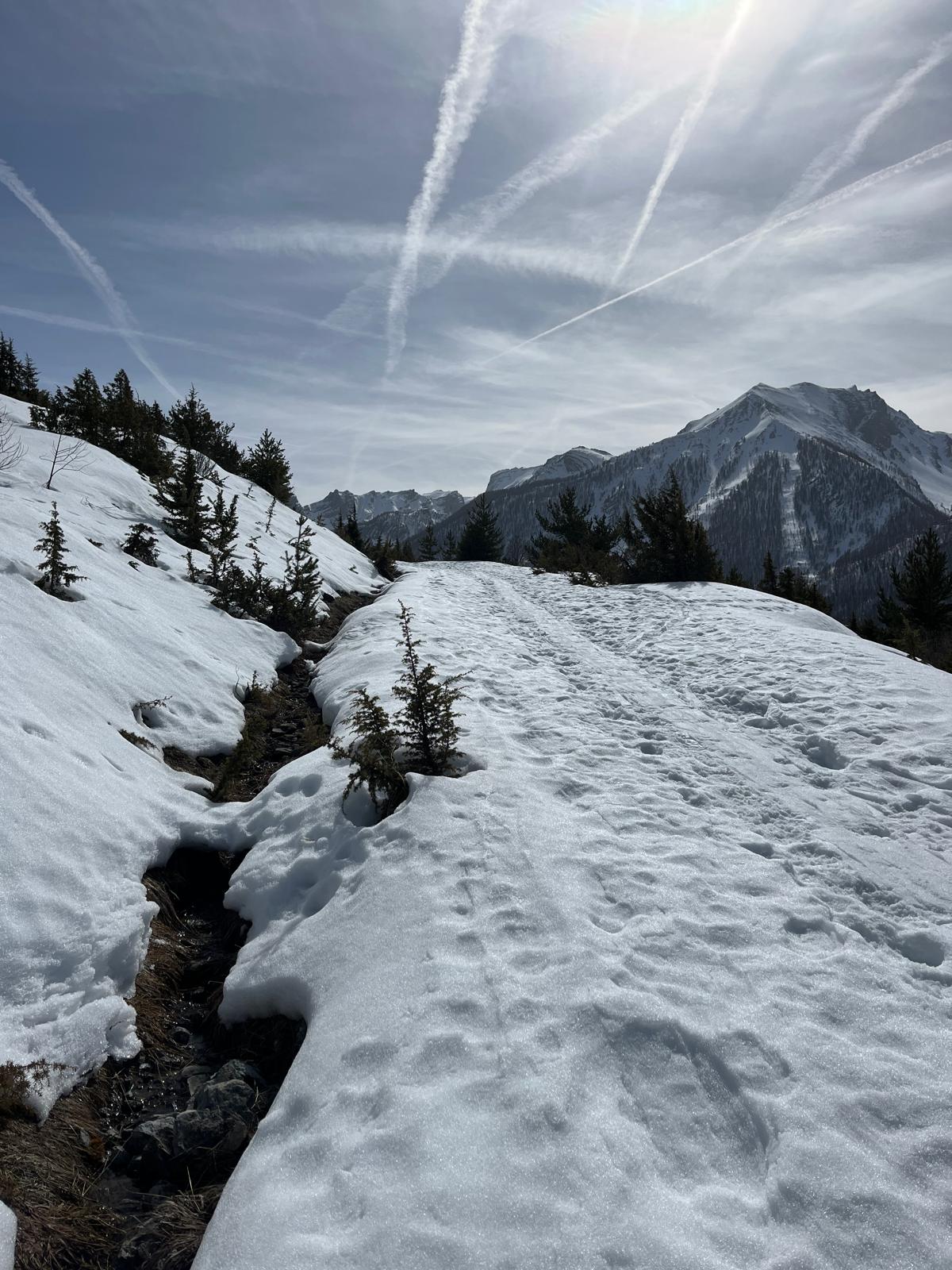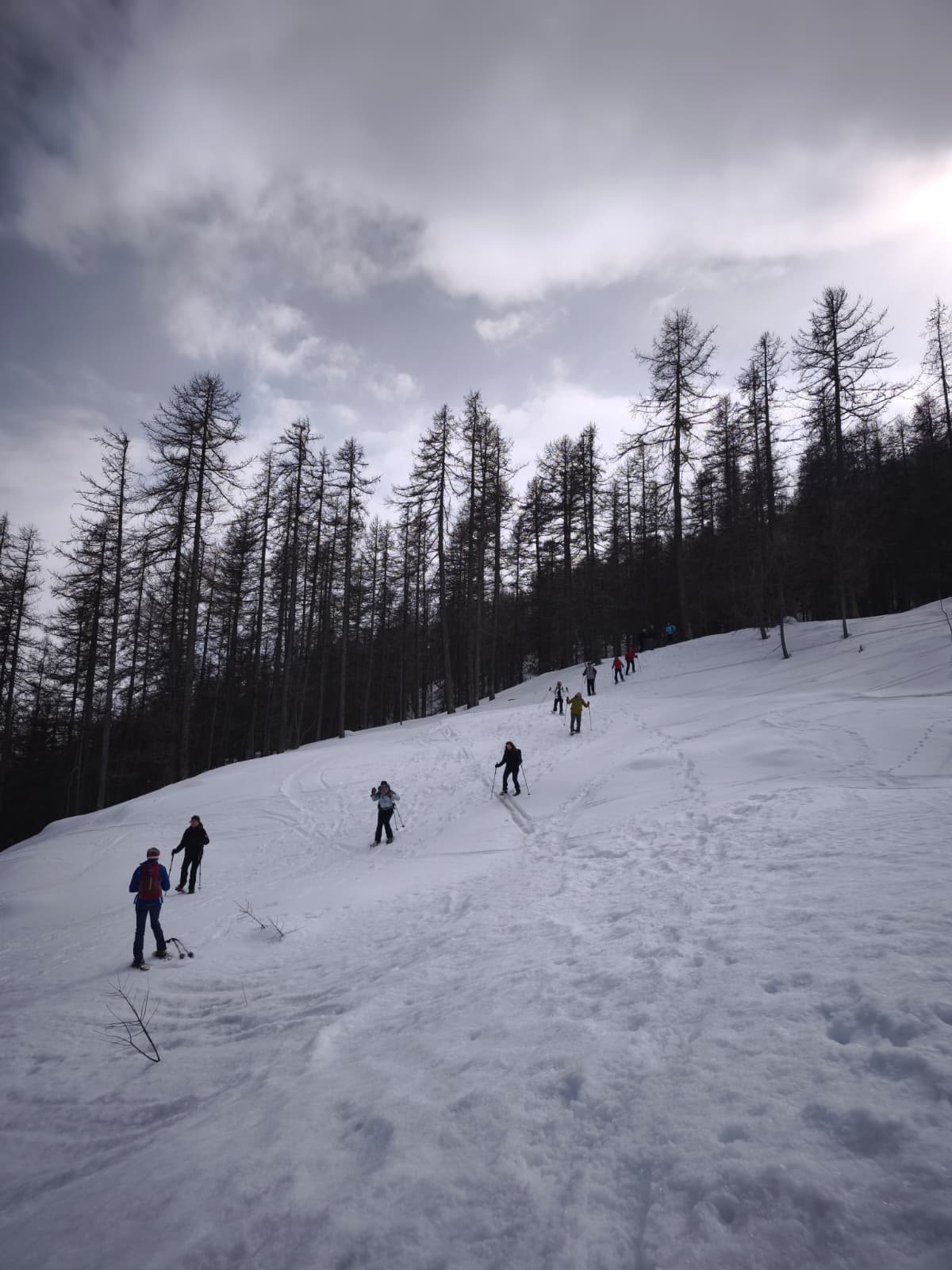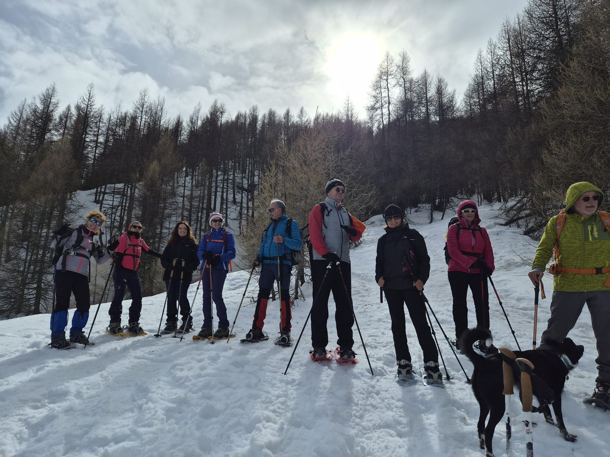 C'est ainsi qu'après avoir cheminé en raquettes, et appris pourquoi les mélèzes perdent leurs aiguilles nous avons : ramassé du bois, de la paille, du lychen, fait un feu 🔥, creusé une banquette dans la neige, dégusté un barbecue, pratiqué le "cul cul glisse" etc, etc ....
