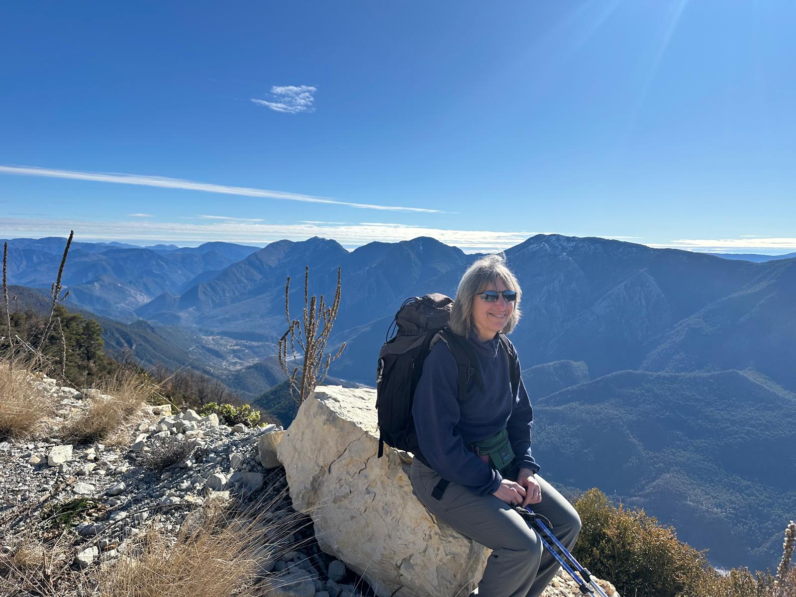 De là, nous avons entrepris l'ascension du Brec d'Ilonse, un sommet offrant un magnifique panorama sur la région, renforçant encore la beauté de notre itinéraire. Nous avons pu distinguer le Mercantour au loin, ainsi que les reliefs escarpés du Haut-Pays niçois. Tout était parfait… sauf peut-être ces muscles qui commençaient à sérieusement protester. Mais fidèles à notre réputation, nous avons tenu bon, motivés par la perspective d’un retour en beauté.