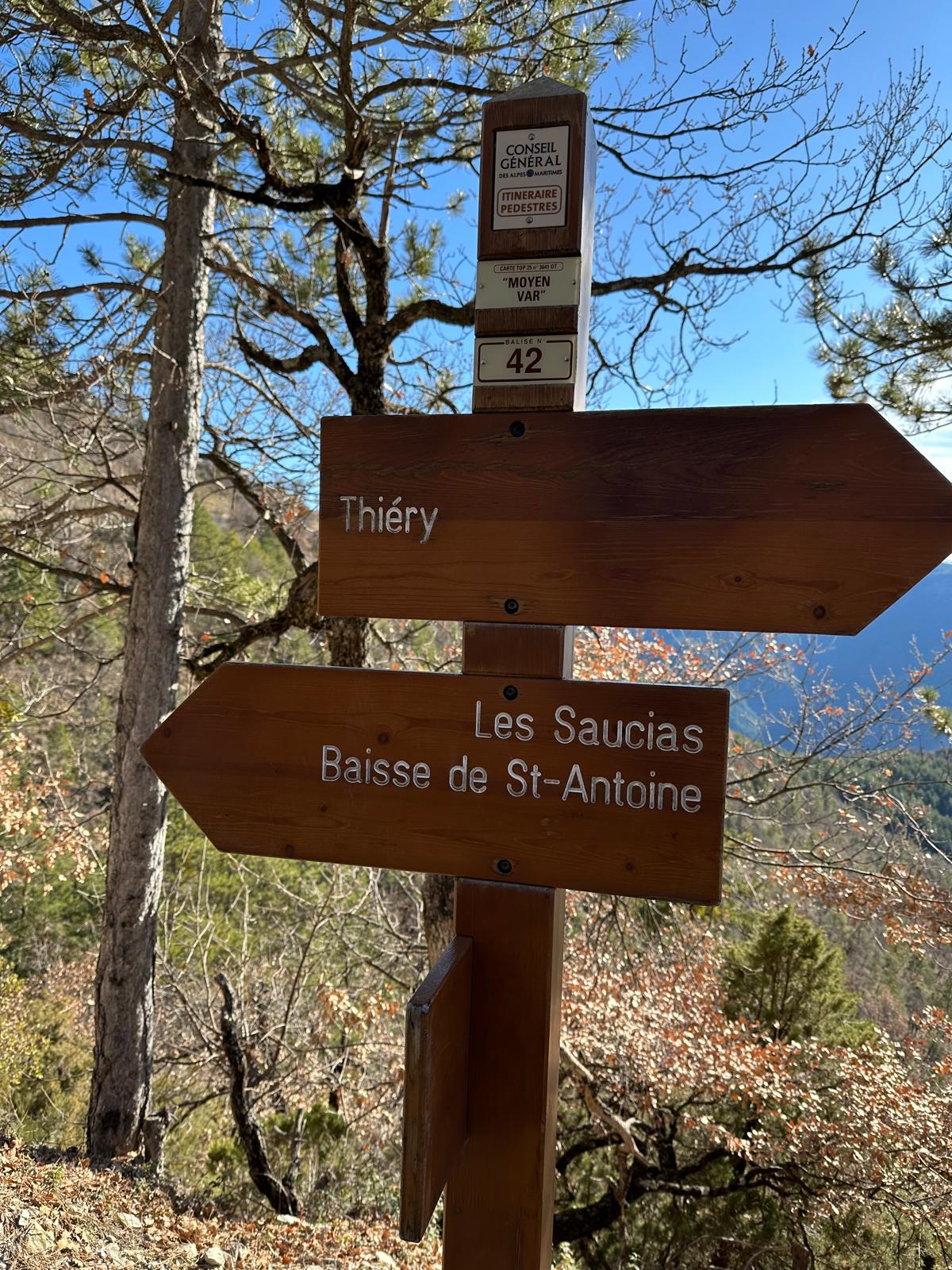 Après cette ultime ascension, nous avons amorcé le retour en passant par le Col Saint Pons, empruntant de jolis sentiers serpentant à travers la montagne. La descente s’est avérée agréable, alternant entre passages forestiers et crêtes dégagées. La lumière dorée de l’après-midi donnait aux paysages un éclat particulier, presque digne d’une carte postale. Enfin, la descente finale par la piste de la Blache nous a ramenés à Thiery, concluant cette belle aventure en pleine nature… demain, les courbatures allaient nous rappeler chaque mètre gravi ! Mais pour nous, ce n'est qu'un détail : marcher, c'est notre dada !