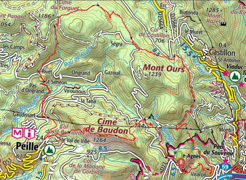 Après une descente rapide vers le col de Castillon, vous emprunterez la piste Castillon – Sainte-Agnès. À un croisement clé, des signaleurs vous orienteront sur un sentier inédit, technique et sauvage, menant au hameau de la Virette, puis à la cascade du Borrigo.
